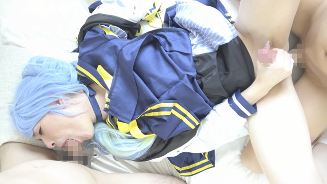 薄布越しにガチガチ勃起ち●ぽピクン 透明感女装レイヤー初撮り極噴射ザーメン