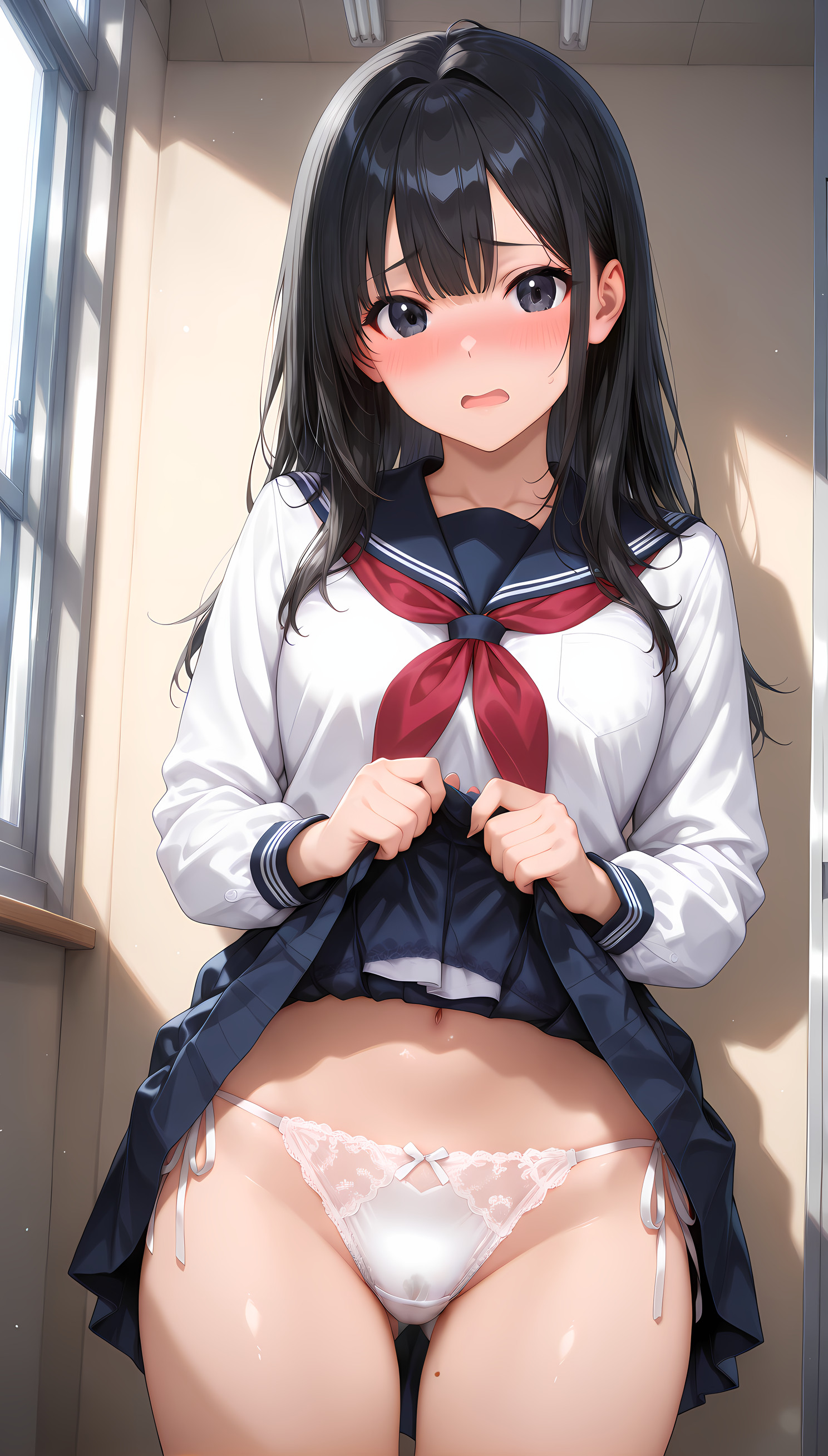 恥ずかしがりながらパンツを見せてくれる黒髪女子