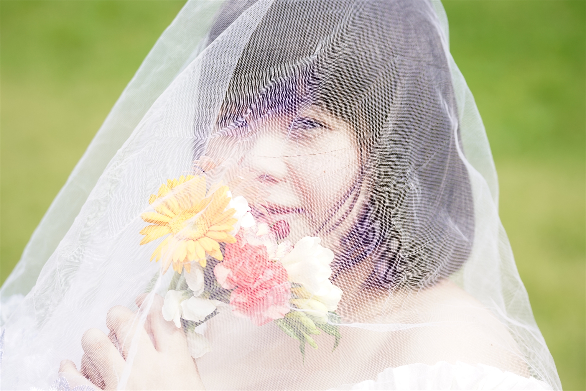 ブーケを被ったりお花を持ったり・・