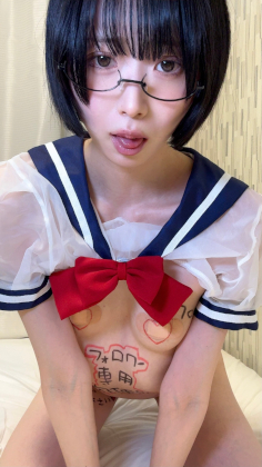 夜月ゆなさんが透け透けでやけに丈の短いセーラー着ています
